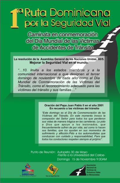 PUBLICACIONES Mapa 1ra. Ruta Dominicana de la Seguridad Vial Segundo Manifiesto por la Seguridad Vial Afiche de la 1ra. Ruta Dominicana de la Seguridad Vial |